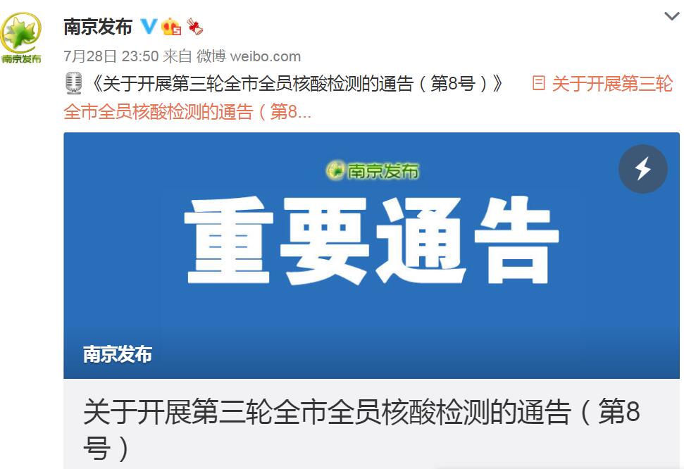 來源:“南京發(fā)布”微博檢測(cè)范圍:全市范圍內(nèi)全部居民(含暫住人...