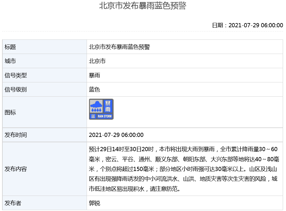 來源:北京市氣象局此后,北京市平谷區(qū)、通州區(qū)、朝陽區(qū)相繼發(fā)布...