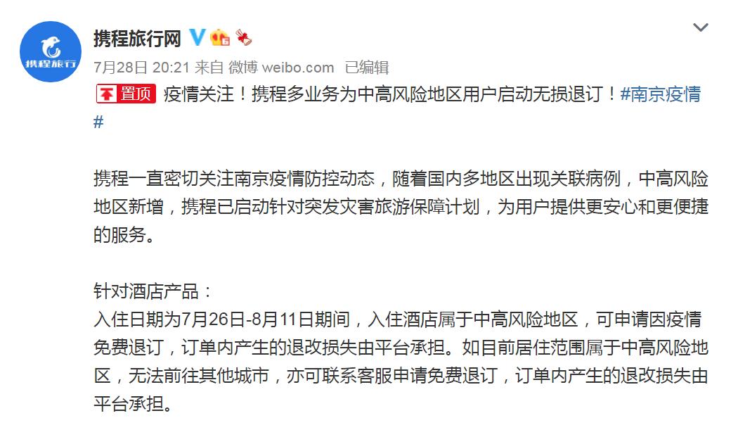 來源:攜程旅行網(wǎng)官方微博同程藝龍官方微信表示,凡是7月28日...